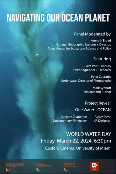 Dean's Blue Hole VR Project Presentation @Cosford Cinema, University of Miami on World Water Day, March 25.